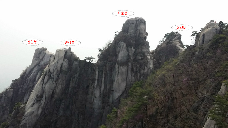 도봉산, 자운봉, 만장봉, 선인봉을 대표하는 세 봉우리는 능선 걷기만 가능하다.