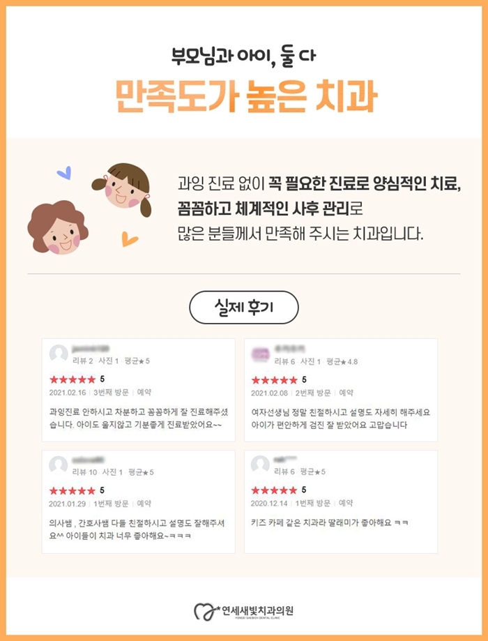 과한 치료 없이 꼭 필요한 진료를 제공하는 만족도 높은 치과
