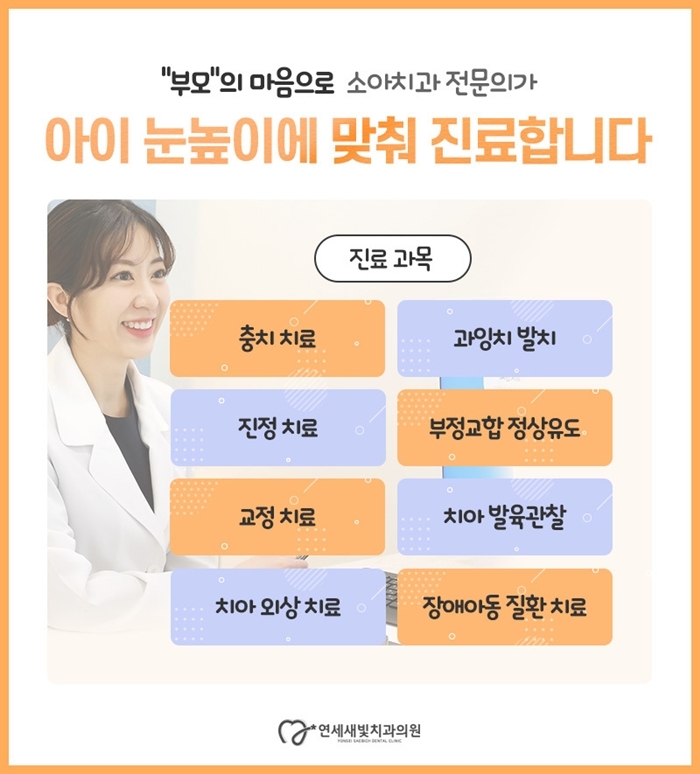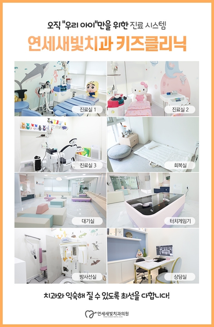 영통구치과 연세새빛치과 키즈클리닉에서는 부모님의 마음을 이해하기 때문에 치료의 시작부터 끝까지 세심한 주의를 기울이고 있습니다.