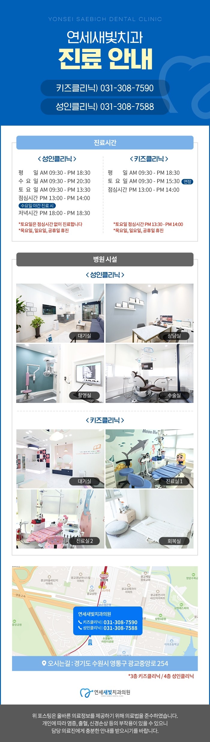 영통구치과로 유명한 연세새빛치과키즈한의원에서는 아이들에게 사용되는 기구들을 항상 철저히 소독하고 소독하며 꼭 필요한 진료만을 진행하고 있습니다.