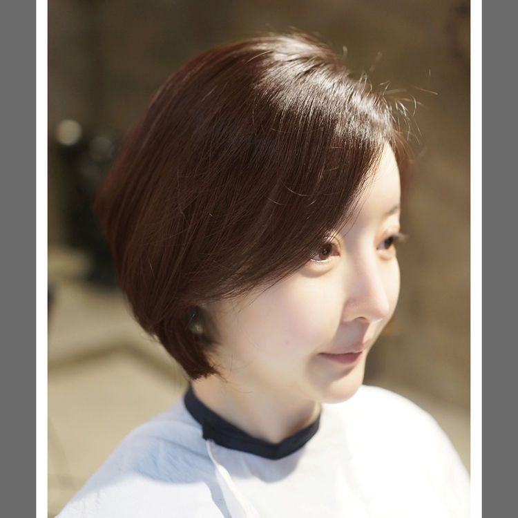 머리를 단발로만 자르면 집에서 고데기를 사용하지 않는 이상 관리가 너무 어렵기 때문에 모발개선 단발 볼륨매직을 해드렸습니다.